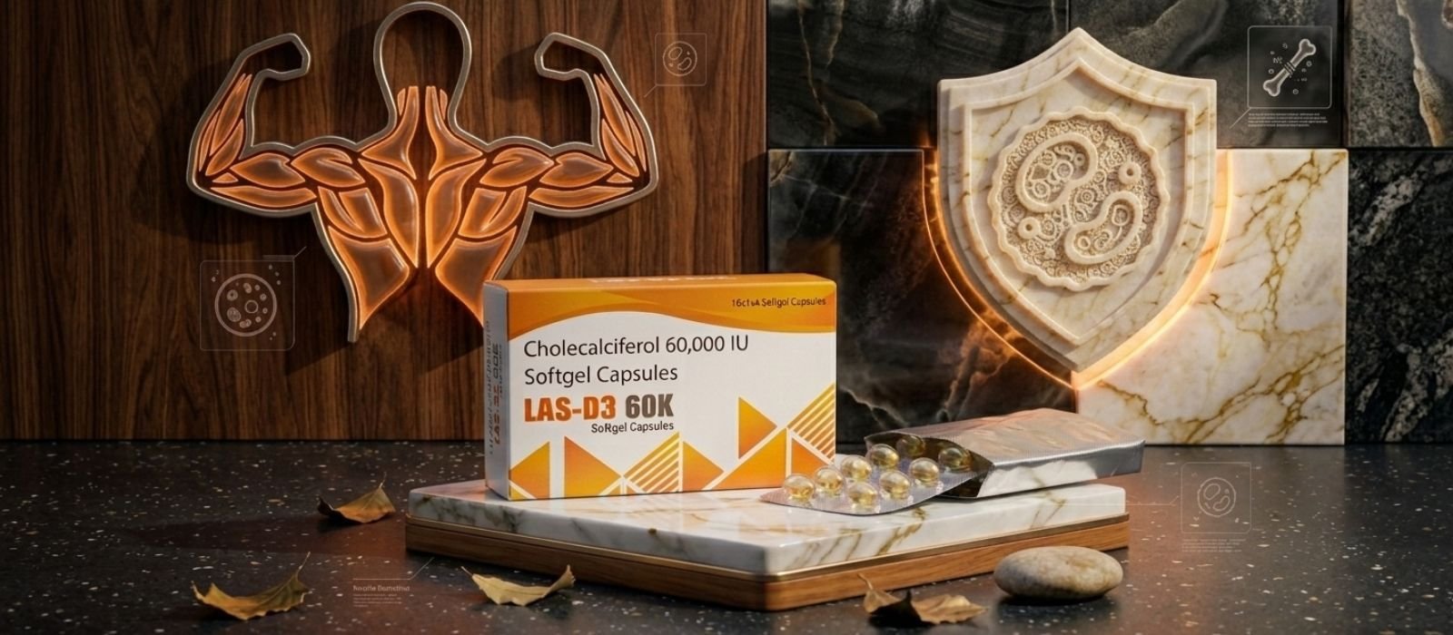 Every softgel capsule contains a powerful dose of Cholecalciferol 60,000 IU. This high-strength formula helps your body absorb calcium from your daily diet effectively. It acts directly on bone mineralization, turning weak, soft bones into a sturdy frame. This once-a-week therapy is much more effective than daily low-dose supplements for correcting deep-rooted deficiencies. Cholecalciferol 60,000 IU is the active ingredient in each softgel capsule.